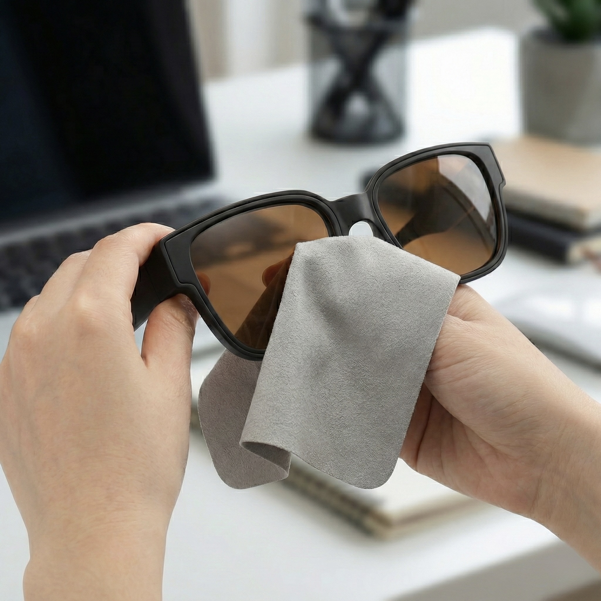 Mantén tu visión impecable con nuestro pañuelo de limpieza de alta gama, diseñado específicamente para el cuidado de superficies delicadas. Con una textura súper suavetipo gamuza, este pañuelo garantiza una limpieza profunda sin riesgo de rayaduras o daños en tus anteojos.